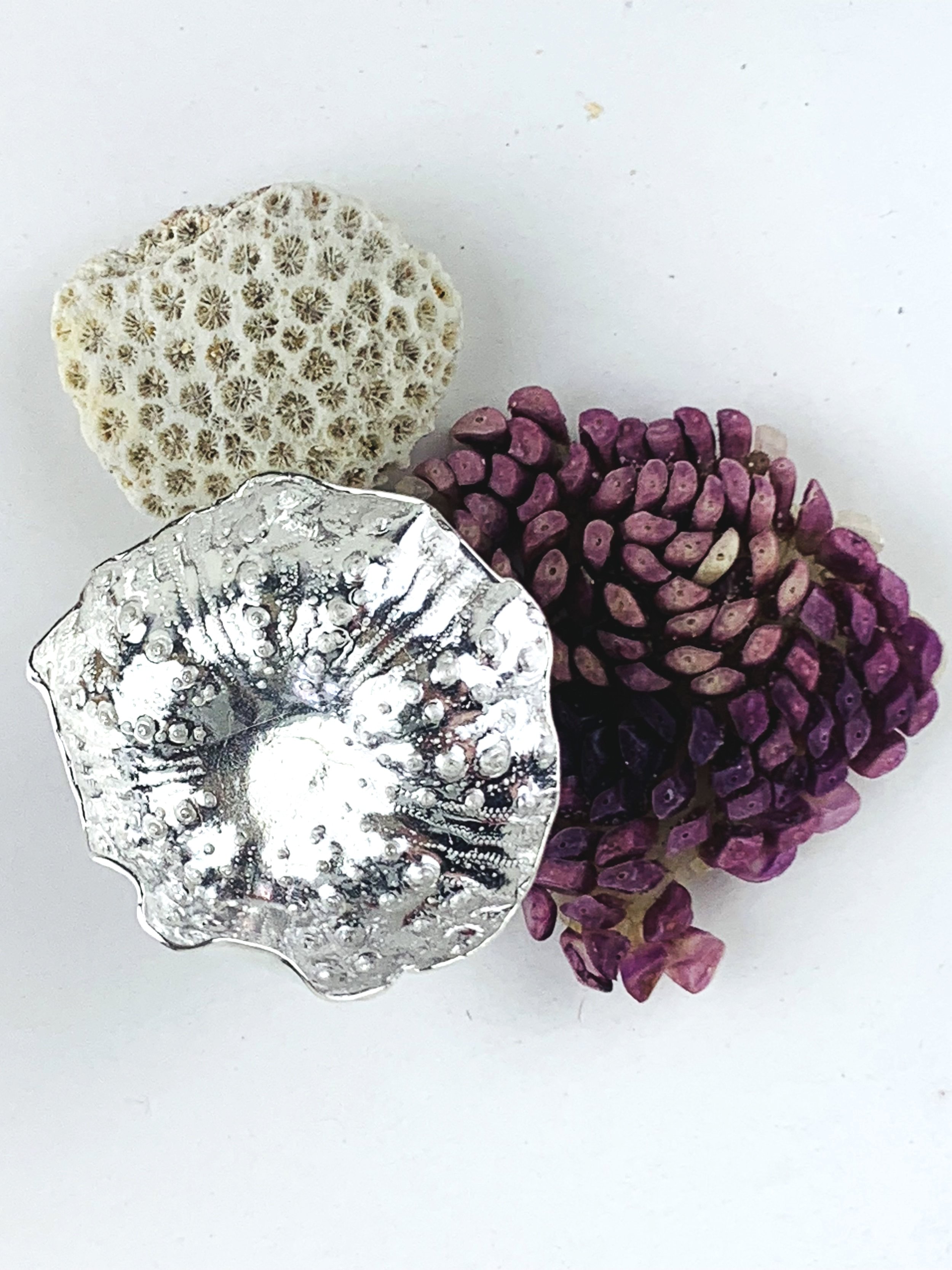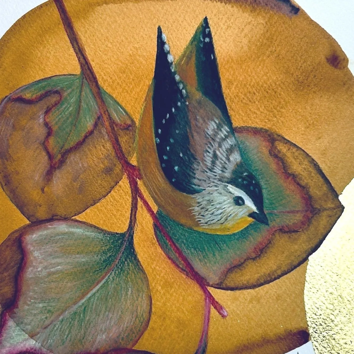 “I share the essence of wonder and connection with nature through artworks featuring native flora, birds and elements, created with natural eco dyes I distill from plants, wild clays and earth pigments, combined with mixed media. I make jewellery and mosaic, play with textiles and love exploring techniques”
